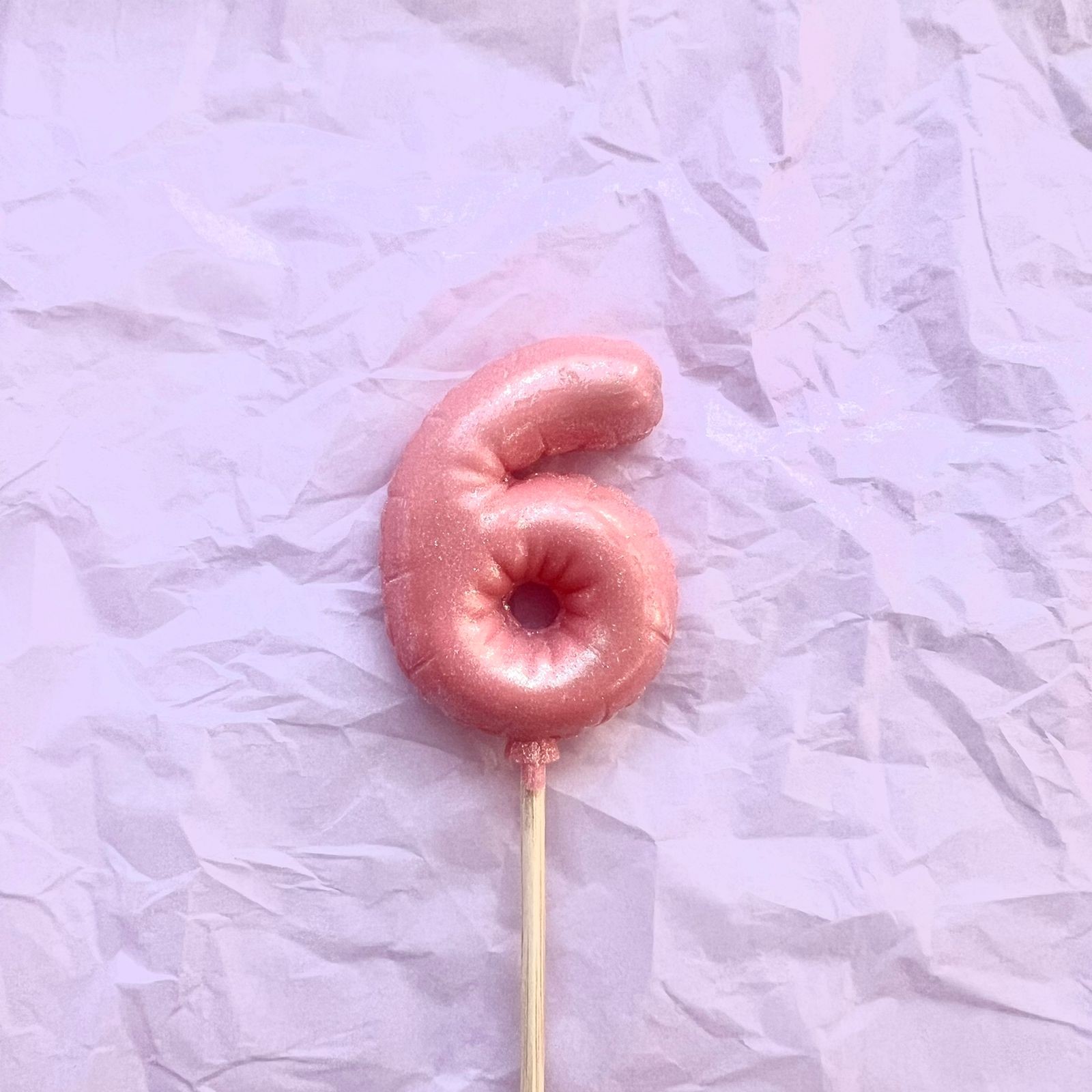 Фигурка из шоколадной глазури "Цифра-Шарик 6" розовая