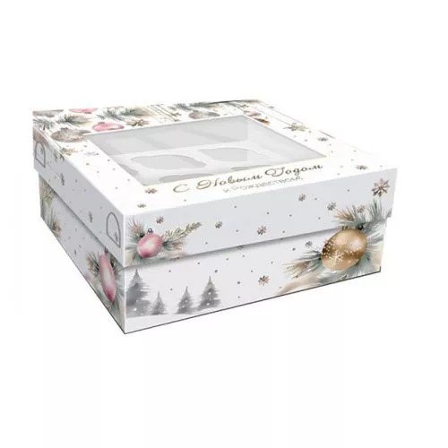 Коробка на 9 капкейков "Снежный праздник", 25*25*10 см