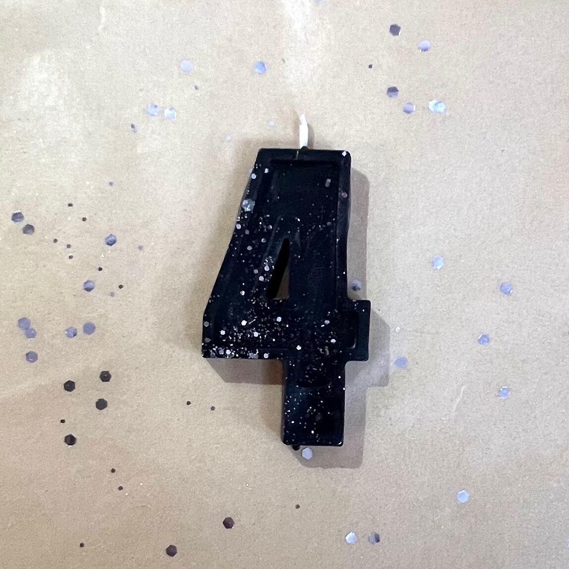Свеча для торта восковая "Гламур", "Цифра 4" черная с серебром