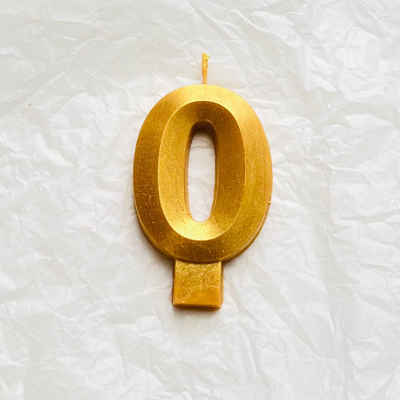 Свеча для торта восковая "Грани", "Цифра 0", золото
