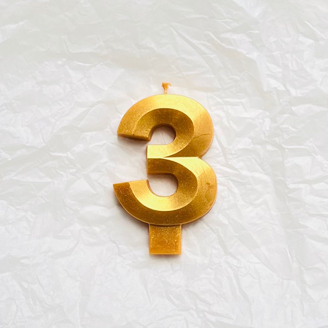 Свеча для торта восковая "Грани", "Цифра 3", золото