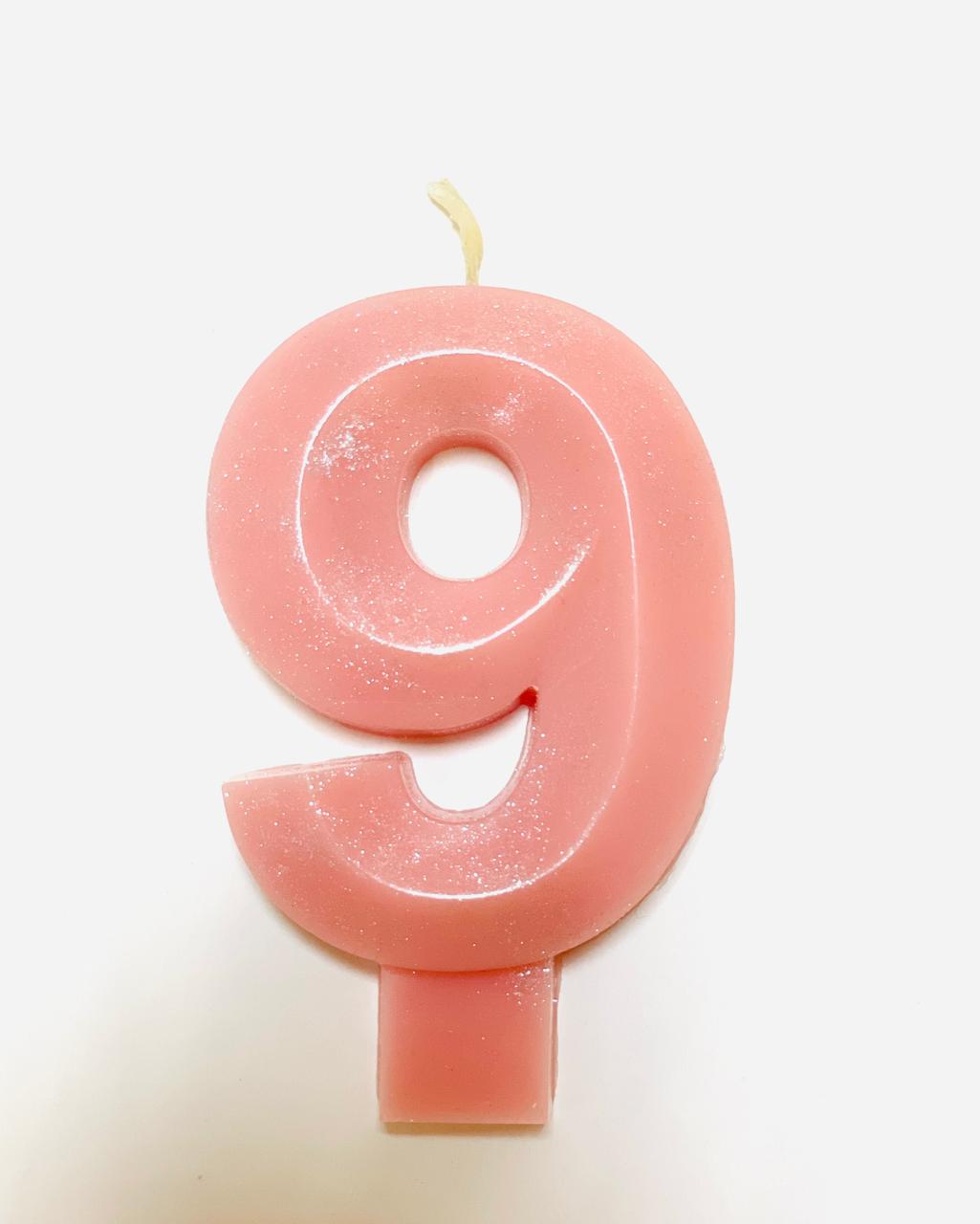 Свеча для торта восковая "Грани", "Цифра 9", розовый перламутр