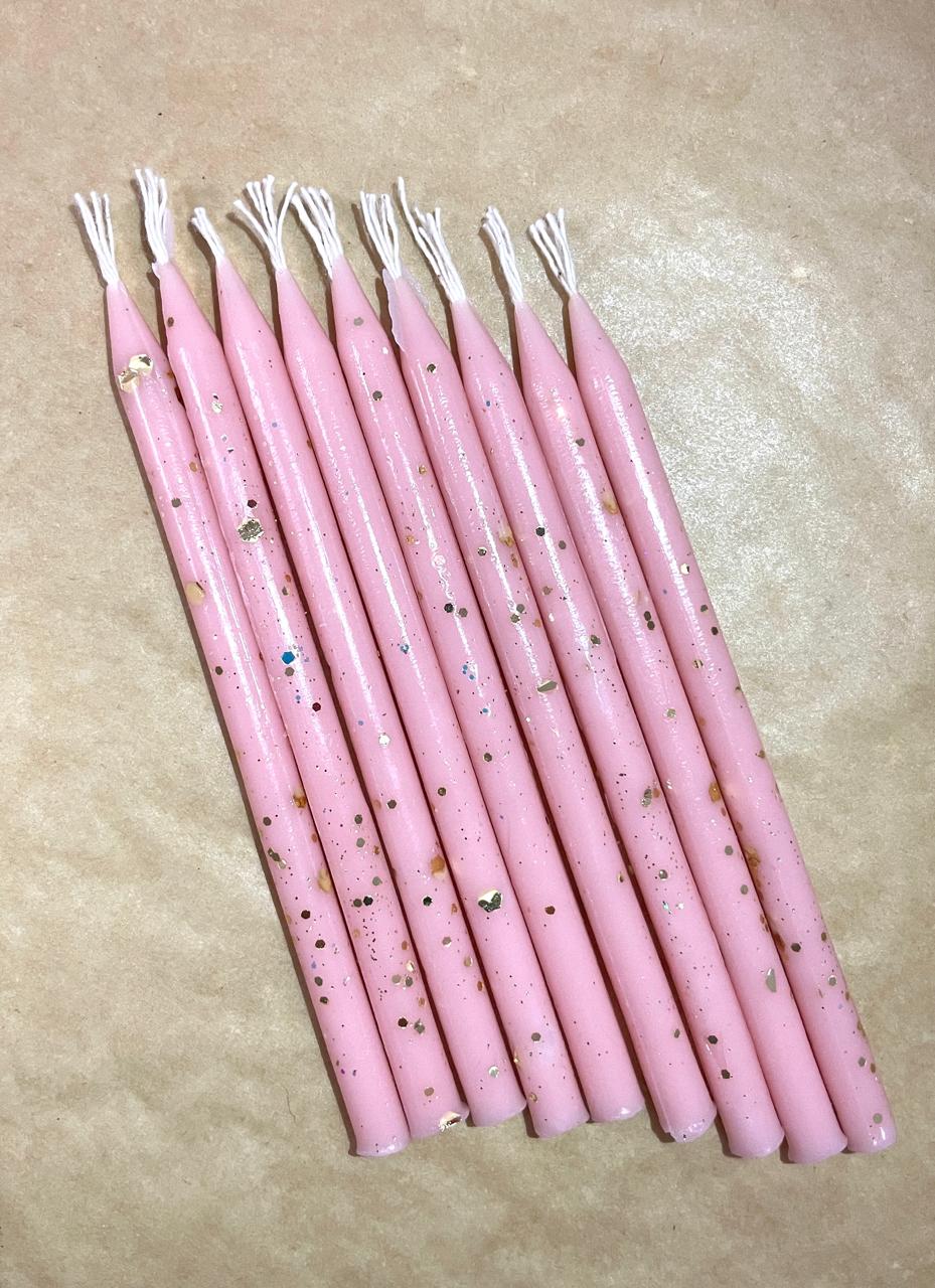 Свечи для торта "Розовые с золотом" 10 см, 9 шт